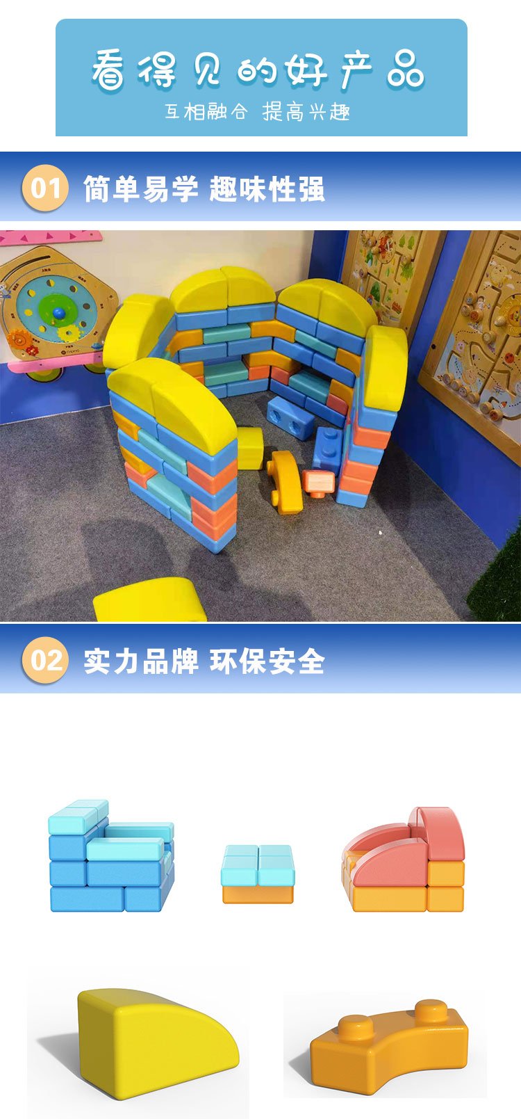 启鸿儿童益智拼搭玩具 幼儿园学校建构区搭建大颗粒塑料积木