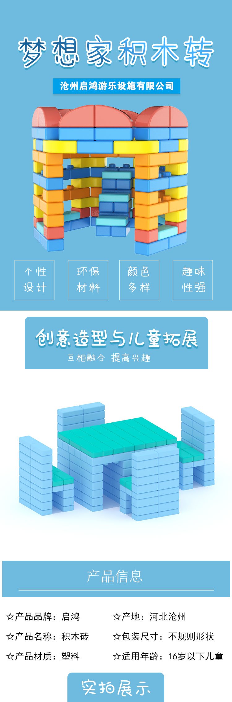 启鸿儿童学校幼儿园室内益智类玩具 可DIY大颗粒塑料积木砖